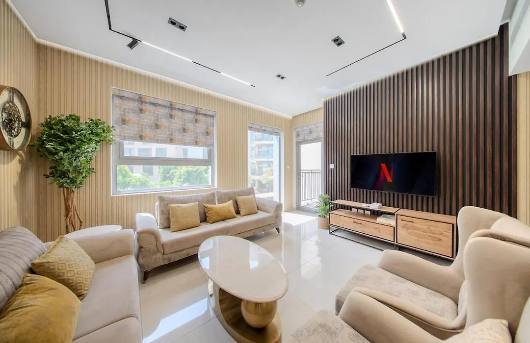 Den här 74 m² stora lägenheten ligger inom 15 minuter med bil från Sharjahs arkeologiska museum. Gästerna kan besöka Sharjah universitet inom 2 km från lägenheten. Inom 20 minuter med bil från boendet hittar du Sharjah Science Museum.